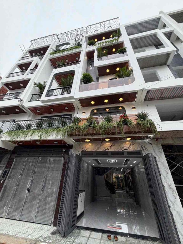 Nhà có 5 tầng gồm 4 phòng ngủ, 5 phòng vệ sinh, nội thất cao cấp, mặt tiền 4m, chiều dài 20m, hẻm xe hơi rộng 8m thuận tiện cho việc di chuyển và kinh doanh. Vị trí nhà gần các tiện ích như công viên, siêu thị, trường học cũng là điểm cộng. Tuy nhiên, nhà chưa hoàn công là điểm cần lưu ý.