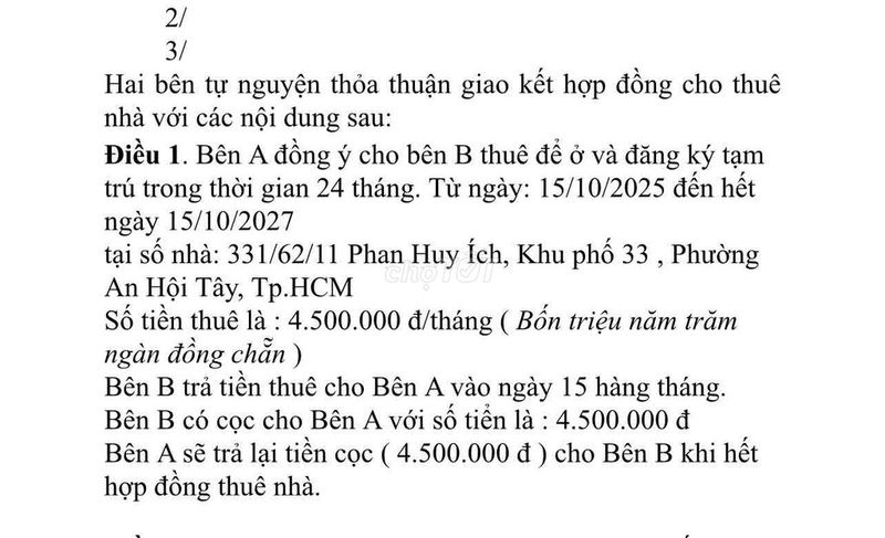 - Cam kết thanh toán đúng hạn hàng tháng, giảm thiểu rủi ro cho chủ nhà.