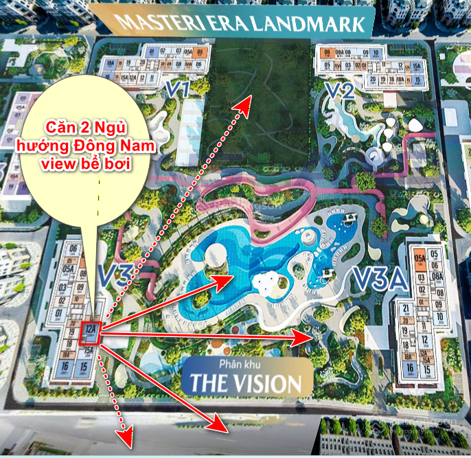 | Masteri Era Landmark | Văn Giang, Hưng Yên | 73 (68 thông thủy) | 2 / 2 | 4,2 | ~61,8 (theo thông thủy) | View bể bơi, tiện ích resort, sổ đỏ |