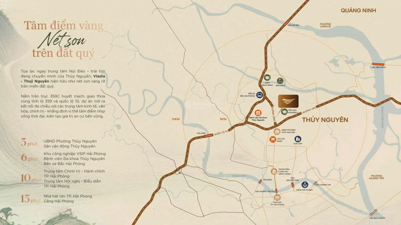 Vị trí: Trung tâm Thủy Nguyên - Hải Phòng, kết nối trực tiếp cao tốc cầu cảng sân bay, sát cầu Nguyễn Trãi.