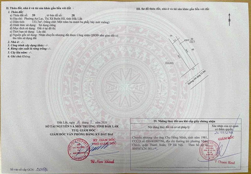| Trần Hưng Đạo, Phường An Lạc, Buôn Hồ | 133.7 | 11.59 | 1.55 | Thổ cư | Gần trung tâm hành chính, sổ đỏ chính chủ |