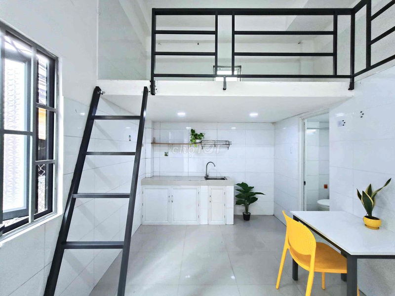- Phòng có gác rộng, bếp kèm bồn rửa, toilet riêng, cửa sổ và ban công thoáng mát, đáp ứng nhu cầu sống tiện nghi.