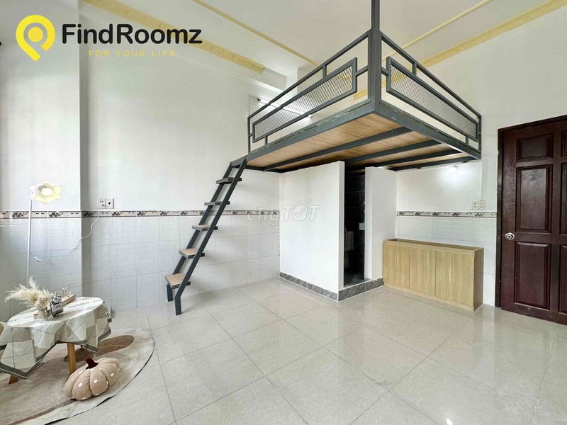 - Phòng có gác lửng, giúp tăng diện tích sử dụng thực tế so với phòng trọ thông thường chỉ 1 tầng.