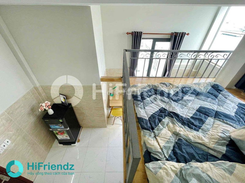 Căn phòng có thiết kế duplex 1 trệt 1 lầu, tách biệt không gian ngủ và sinh hoạt, diện tích rộng rãi 38 m², kèm theo nội thất đầy đủ, tiện nghi cao cấp như máy lạnh, tủ lạnh, giường nệm, tủ quần áo, kệ bếp,… giúp người thuê có thể dọn vào ở ngay mà không cần đầu tư thêm. Vị trí nằm trên đường Nơ Trang Long, phường 12, Bình Thạnh, thuận tiện di chuyển đến các trường đại học lớn cũng như trung tâm thành phố, rất phù hợp với sinh viên và người đi làm.
