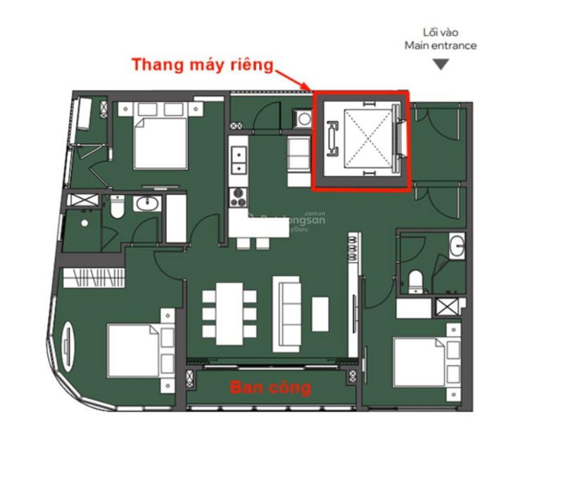 - Thang máy riêng: Đây là yếu tố cực kỳ hiếm có và làm tăng giá trị căn hộ đáng kể. Đặc quyền này giúp cư dân có trải nghiệm sống cao cấp và riêng tư, điều mà các căn khác không có.