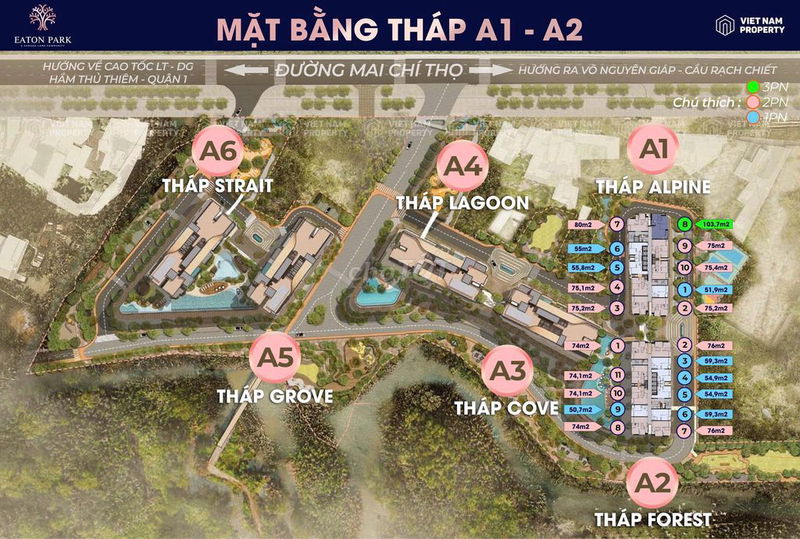 | Diện tích phổ biến căn 2PN | 55 – 75 m² | 59 m² | Diện tích nhỏ gọn, phù hợp gia đình trẻ hoặc đầu tư cho thuê |
