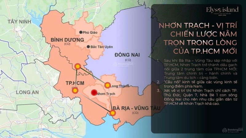 | Elyse Island, Đại Phước | 168 | 18,99 | ~113 | Đảo sinh thái, ven sông, bến du thuyền, mật độ thấp, gần TP.HCM |