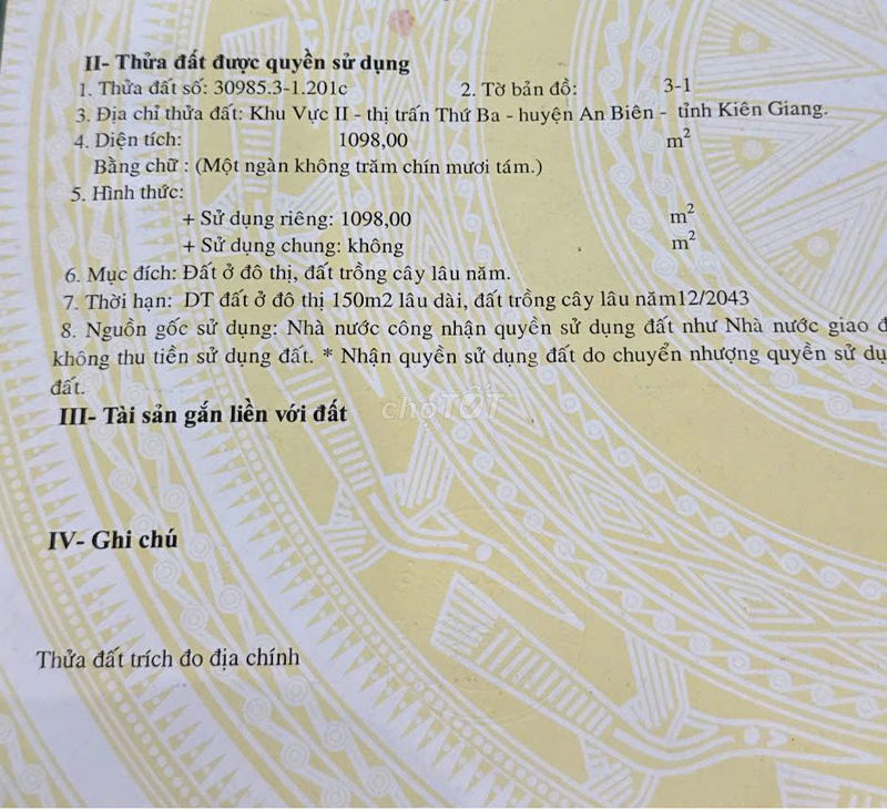EM CHÍNH CHỦ CẦN BÁN 1100m2 ĐẤT MẶT TIỀN KHU CÂY XOÀI GẦN TUYẾN TRÁNH CHỢ THỨ 3 AN BIÊN KIÊN GIANG