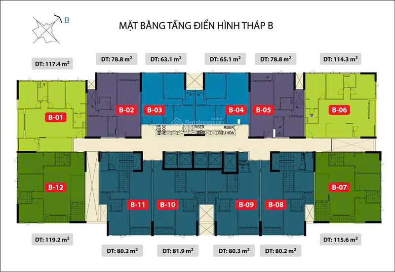 + Thiết kế 2 tòa tháp A (33 tầng) và B (27 tầng), diện tích 23.061m².