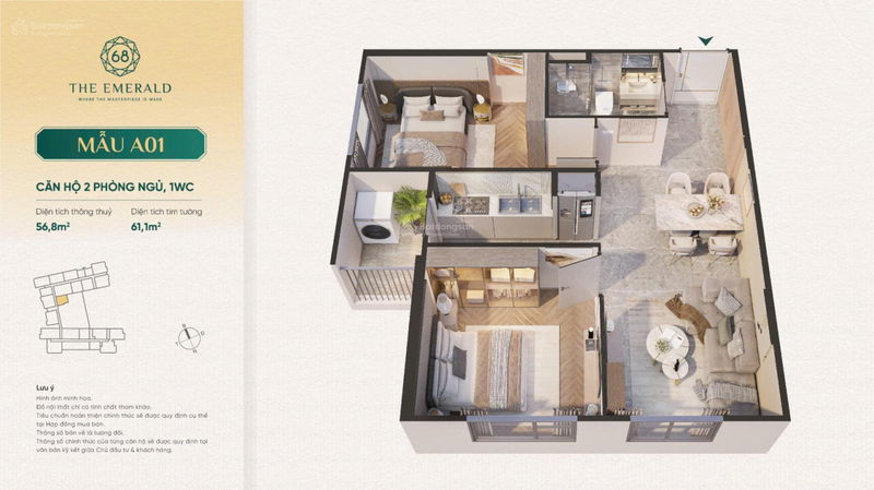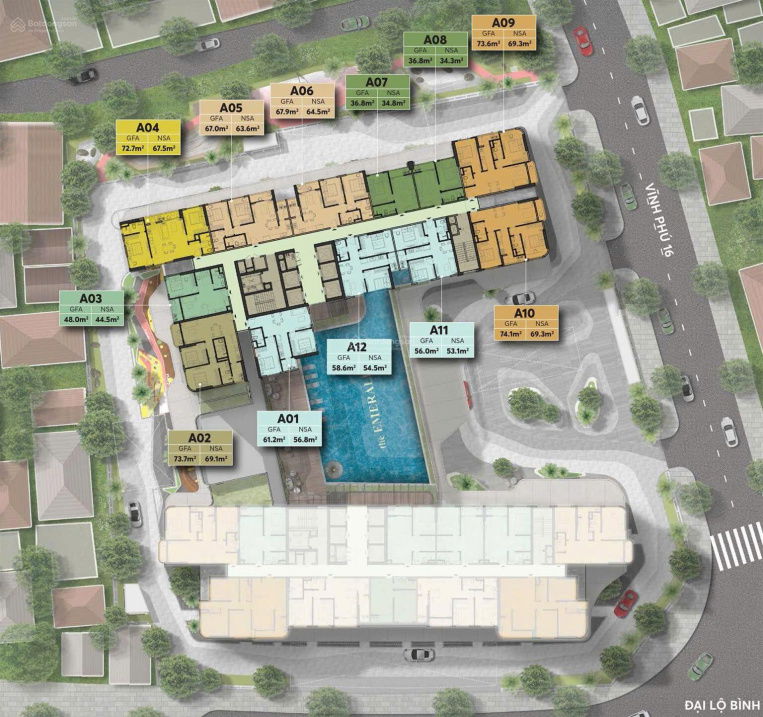 The Emerald 68 (báo giá) 66 2PN 45 2,97 Vị trí mặt tiền Đại Lộ Bình Dương, sát TP. Thủ Đức