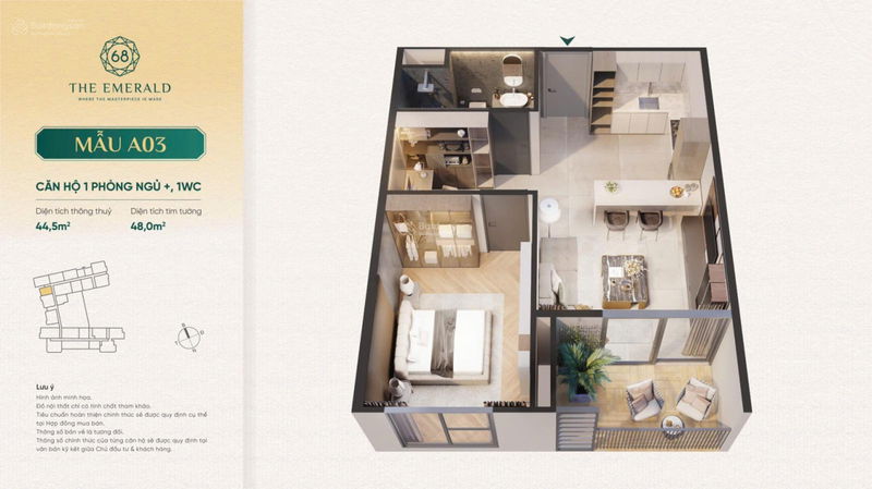 - Căn 1PN: 35m². Giá: 1,9 tỷ, chỉ cần thanh toán 380 triệu.