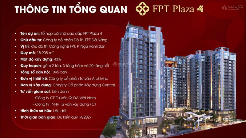 | FPT Plaza 4 (căn mẫu) | Ngũ Hành Sơn, Đà Nẵng | 45 | 2,15 | 47,8 | Mảng xanh 6400 m², hồ bơi vô cực, 26 thang máy, view sông – biển – núi | 2024 |