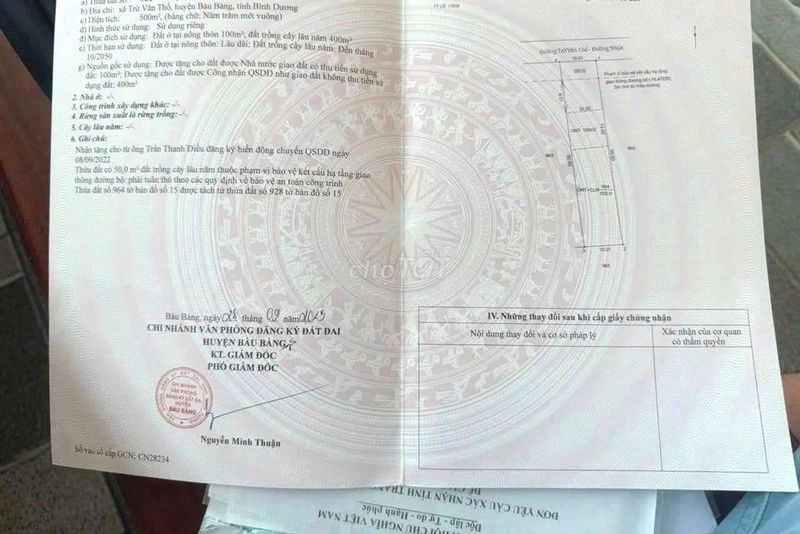 Check giá "GIÁ 660TR BÁN NHANH ĐẤT 500m2/100 TC. GẦN CHỢ TRỪ VĂN THỐ LIỀN KỀ KCN"