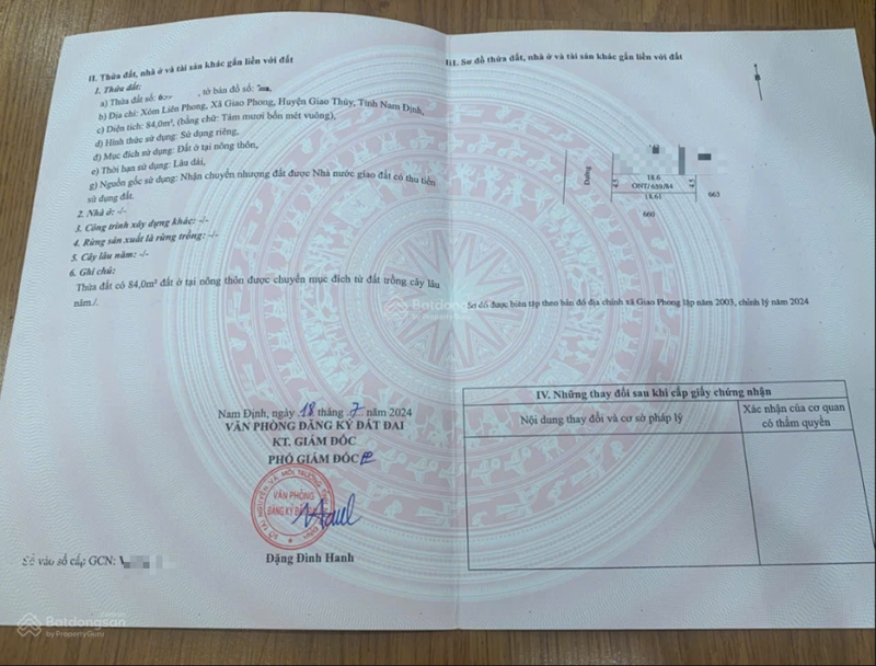 | TT Giao Thủy, Nam Định | 80 m² | 20 – 22 | 1,6 – 1,76 | Đất thổ cư, đường nhựa 7m | 05/2024 |