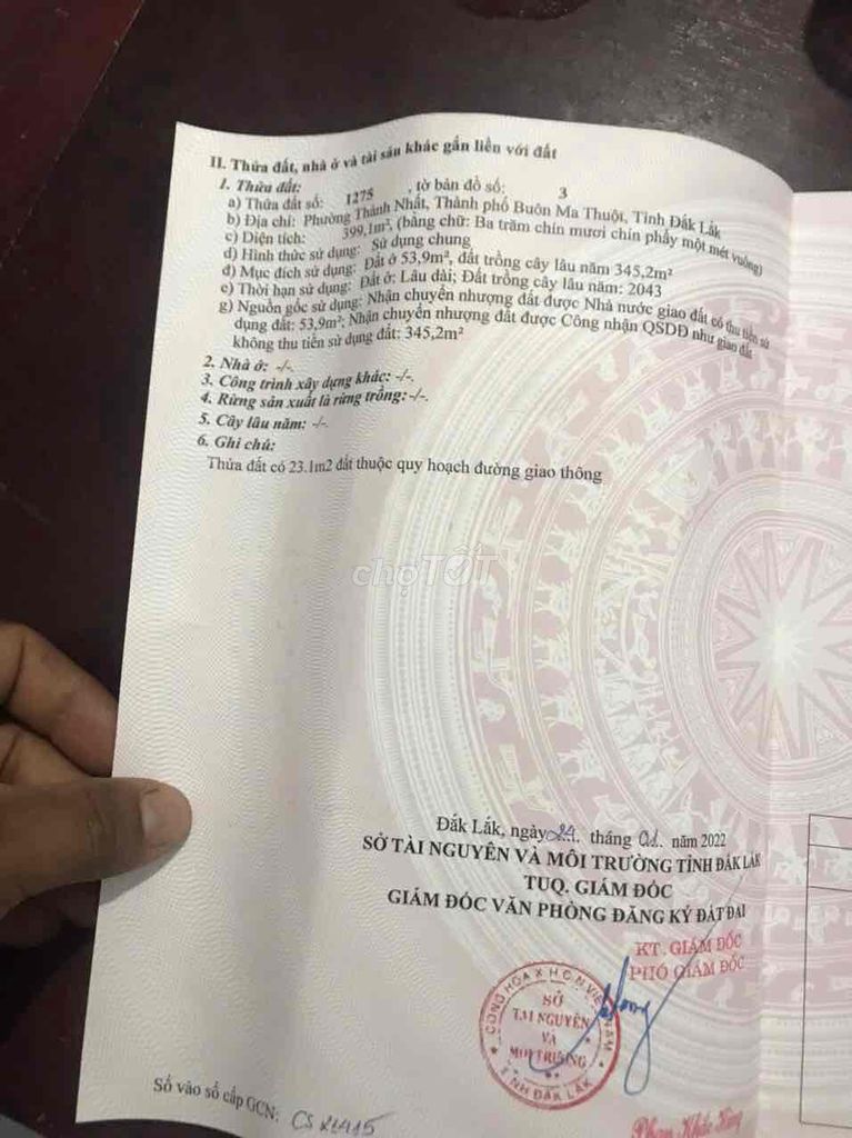 Điểm cần lưu ý là đất có thổ cư một phần, tức không phải toàn bộ diện tích đều được cấp phép xây dựng nhà ở, điều này có thể hạn chế khả năng sử dụng hoặc phát triển sau này.