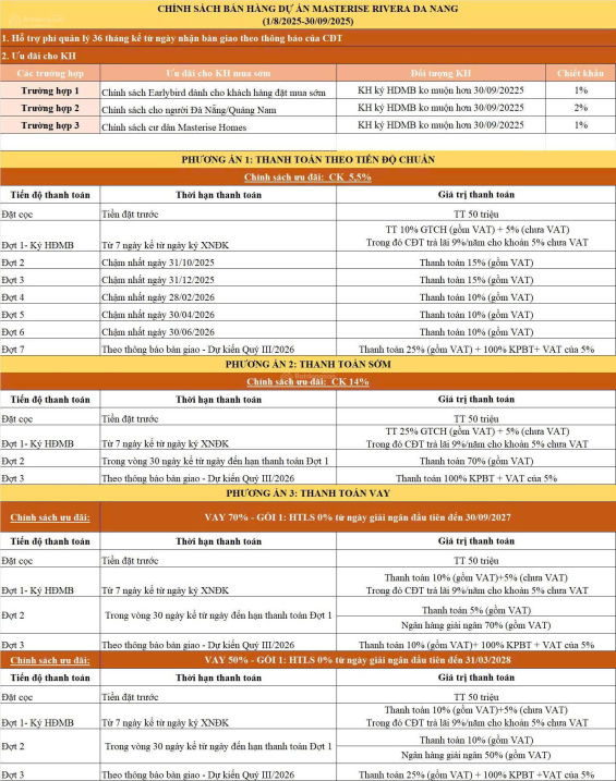 | Masteri Rivera Đà Nẵng | Quận Hải Châu, view sông, biển | 80 | 3PN | 73.75 | 5.9 | Sổ hồng lâu dài | Cao cấp, nội thất liền tường, kính LOW-E, 2 logia |