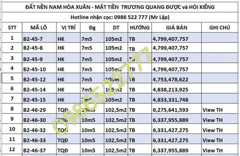 | Tiềm năng tăng giá | Khu vực hạ tầng hoàn chỉnh, dân cư đông đúc, gần trường học, công viên, bờ sông | Khu Nam Hòa Xuân đang phát triển mạnh, quỹ đất đẹp ngày càng khan hiếm | Có tiềm năng tăng giá tốt trong trung và dài hạn do phát triển đô thị và hạ tầng đồng bộ. |
