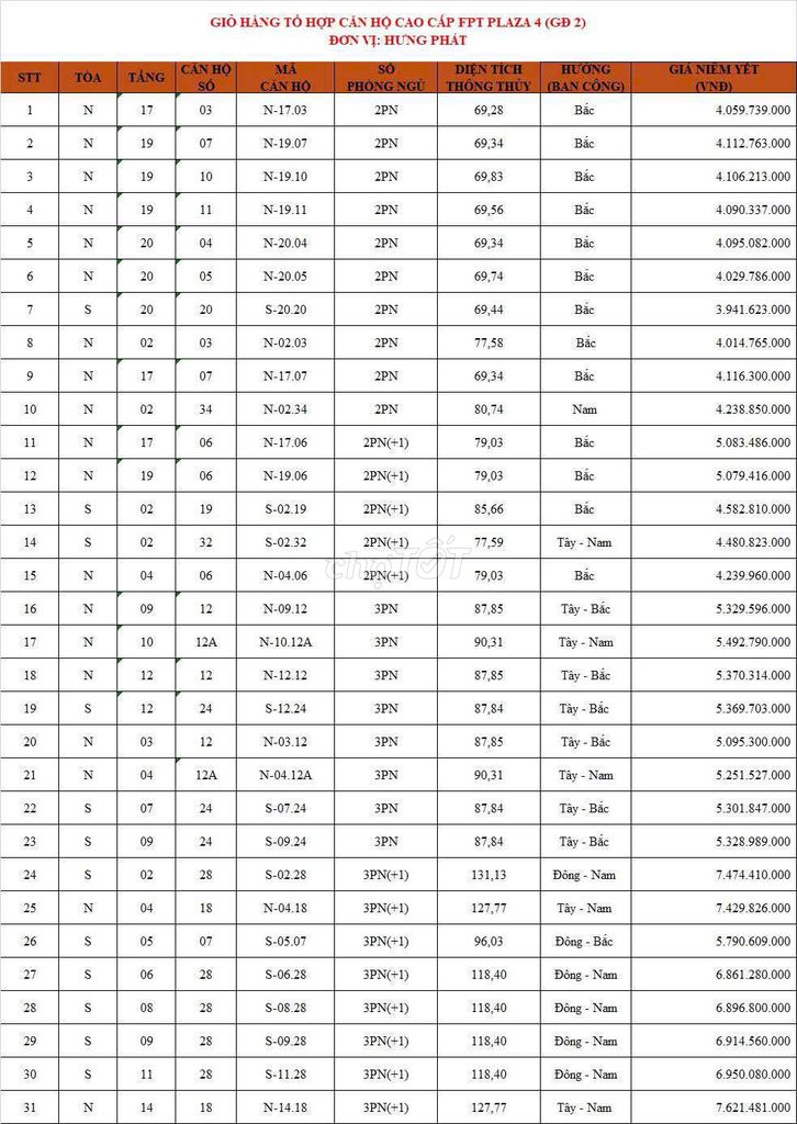 Căn hộ 2 phòng ngủ, diện tích 70 m² tại dự án FPT Plaza 4, Quận Ngũ Hành Sơn, Đà Nẵng đang được chào bán với giá 4,029 tỷ đồng, tương đương 57,56 triệu/m². Đây là mức giá khá cao so với mặt bằng chung căn hộ mới tại khu vực Ngũ Hành Sơn, đặc biệt với các dự án cùng phân khúc.