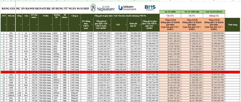 So với các dự án khác hoàn thiện cơ bản như Vinhomes Green Bay hay D’. Le Roi Soleil với giá từ 159 – 167 triệu đồng/m², mức giá của căn hộ Hanoi Signature là hợp lý khi xét về vị trí trung tâm, thiết kế hiện đại và tiềm năng phát triển khu vực.