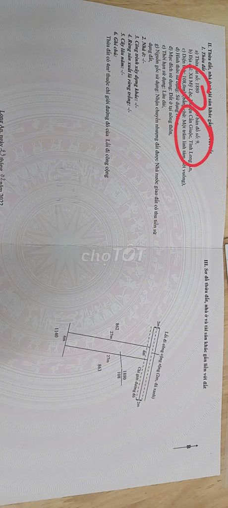 Đất đã có sổ đỏ với thổ cư toàn bộ, phù hợp pháp lý giúp người mua yên tâm về quyền sử dụng đất và thủ tục giao dịch.