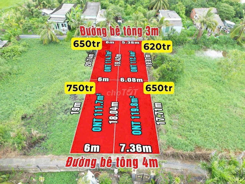 Diện tích đất 115m², giá niêm yết 650 triệu, tương đương khoảng 5,65 triệu đồng/m². Đây là mức giá khá cao so với mặt bằng chung đất thổ cư tại vùng ven huyện Tân Trụ, Long An, nơi giá đất thổ cư khu vực xã An Nhựt Tân thường dao động từ 3,5 – 4,5 triệu/m² tùy vị trí cụ thể.