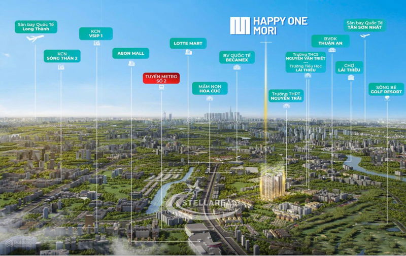 | Vị trí | Gần Metro số 2, Aeon Mall, Lotte Mart, thuận tiện di chuyển về TP.HCM | Nhiều dự án khác tại Bình Dương cũng có vị trí giao thông thuận lợi, gần trung tâm hành chính | Vị trí trung tâm Lái Thiêu và tiện ích xung quanh là điểm cộng lớn |