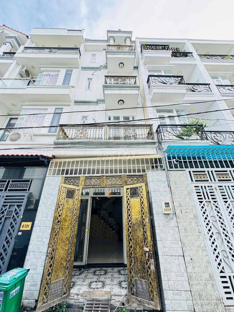 • Diện tích đất: 54m² (4m x 13.5m), diện tích sử dụng thực tế lên tới 180m² với 4 tầng (1 trệt, 2 lầu, 1 tum sân thượng), 5 phòng ngủ, 3 WC, sân để xe máy, phòng khách, phòng bếp, phòng thờ.