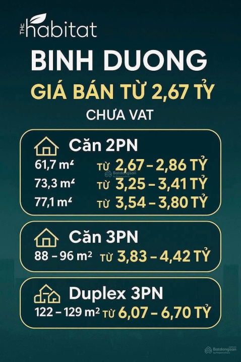 The Habitat Bình Dương 67 2 2,45 ~36,57 Pháp lý chuẩn, tiện ích đầy đủ, vị trí trung tâm