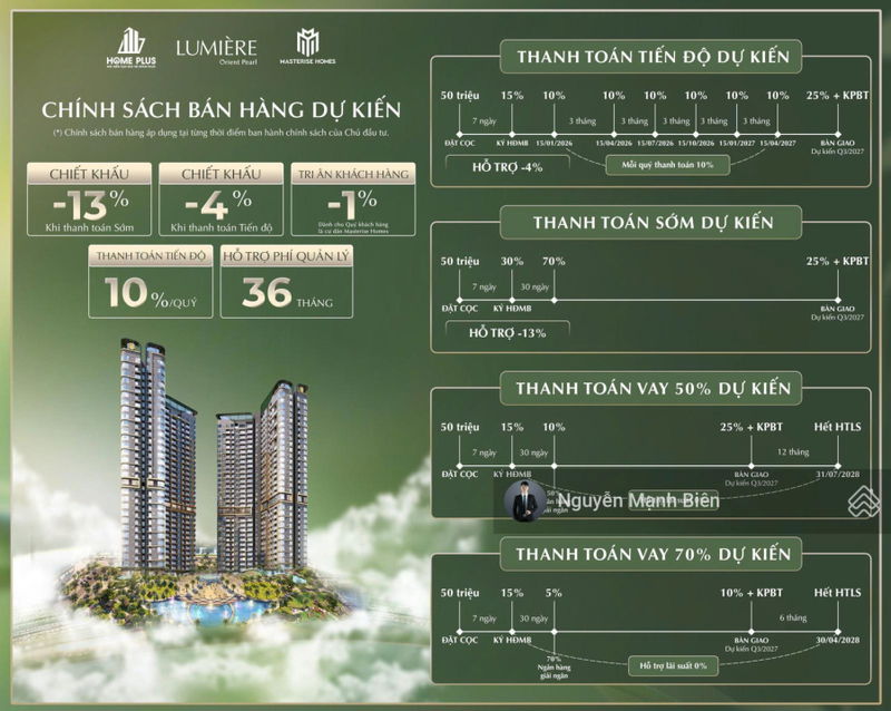 Chiết khấu -1% cho cư dân Masterise Homes.
