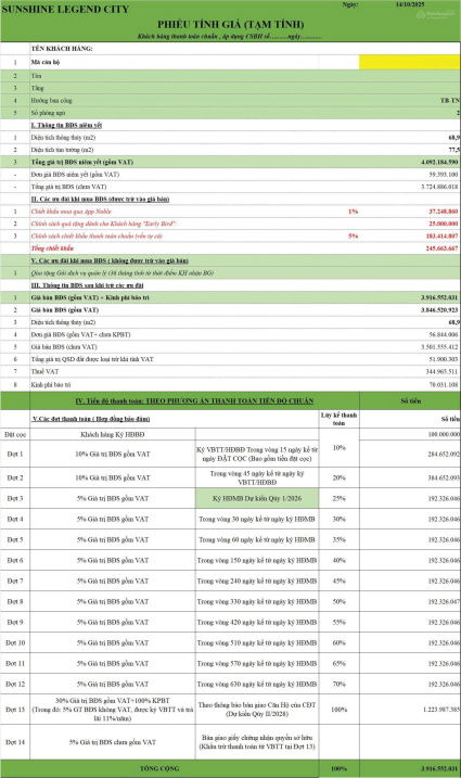 Mức giá 3,73 tỷ đồng cho căn hộ 68,9 m² tương đương khoảng 54 triệu đồng/m² tại dự án Sunshine Legend City, Long Hưng, Văn Giang, Hưng Yên là mức giá có thể coi là tương đối hợp lý trong bối cảnh thị trường bất động sản hiện nay, đặc biệt đối với những căn view sông Hồng và thuộc phân khúc cao tầng.