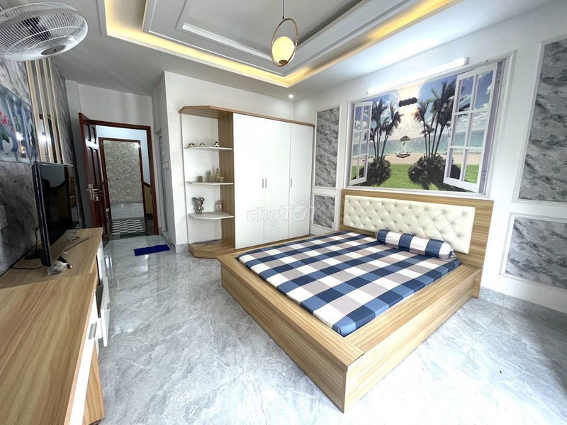 2. Quy mô và thiết kế: Nhà 5 tầng bê tông cốt thép, mới xây, diện tích 68m² (ngang 4m x dài 15m), nở hậu 6,2m, thiết kế hiện đại với 5 phòng ngủ, 6 WC, sân thượng, giếng trời thoáng mát. Chủ nhà tặng full nội thất, giúp người mua tiết kiệm chi phí trang bị nội thất.