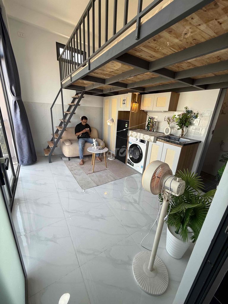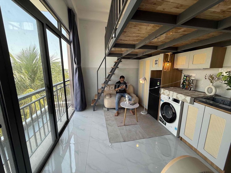 - Phòng có nội thất đầy đủ, gồm máy lạnh, tủ quần áo, bàn bếp, máy giặt tự động, thang máy, ra vào bằng vân tay, tạo sự tiện nghi và an toàn cho người thuê.