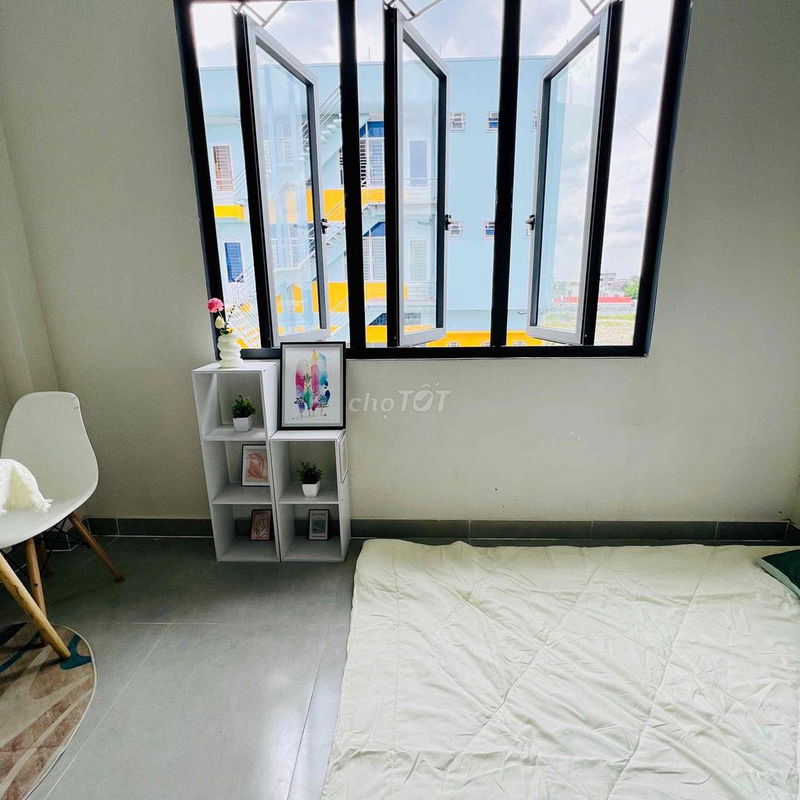 Phòng có gác lửng và hệ thống ra vào bằng vân tay cũng là điểm cộng lớn về an ninh và không gian sử dụng. Các tiện ích như máy giặt chung trong tòa nhà và vị trí thuận tiện cũng làm tăng giá trị căn phòng.