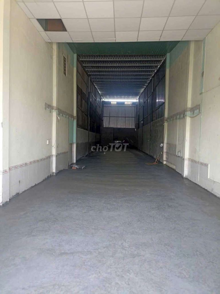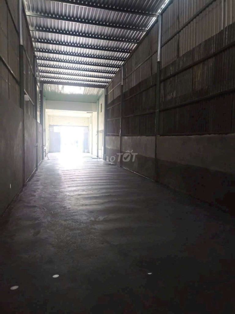 Diện tích 150m² (5m x 30m), trần cao 6-7m, đáp ứng được yêu cầu chứa hàng, sản xuất với không gian thoáng đãng và có thể tận dụng chiều cao để bố trí kệ kho hoặc máy móc.