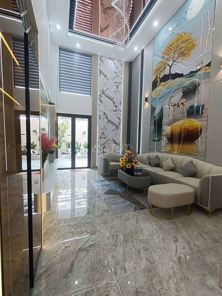 Căn nhà xây 4 tầng (1 trệt + 1 lửng + 3 lầu) với tổng diện tích sàn lên đến 310m² trên mảnh đất 96m² khá rộng rãi. Thiết kế hiện đại, phân chia công năng hợp lý, 5 phòng ngủ, 6 phòng vệ sinh phù hợp cho gia đình nhiều thế hệ hoặc nhu cầu ở kết hợp cho thuê.