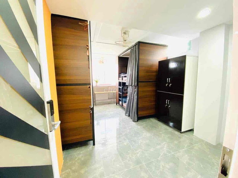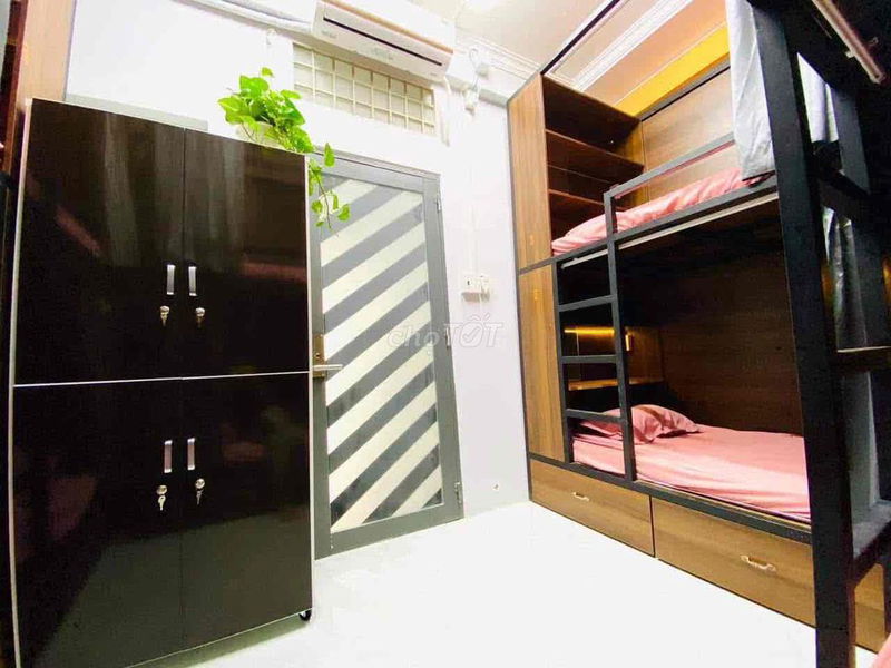 Phòng trọ có nhiều tiện nghi hiện đại như máy lạnh, máy nước nóng lạnh riêng, tủ lạnh, tủ đồ, hệ thống an ninh camera và khóa vân tay, cùng dịch vụ bao gồm điện nước và wifi tốc độ cao. Vị trí gần các trường đại học lớn và các tiện ích công cộng cũng là điểm cộng đáng kể.