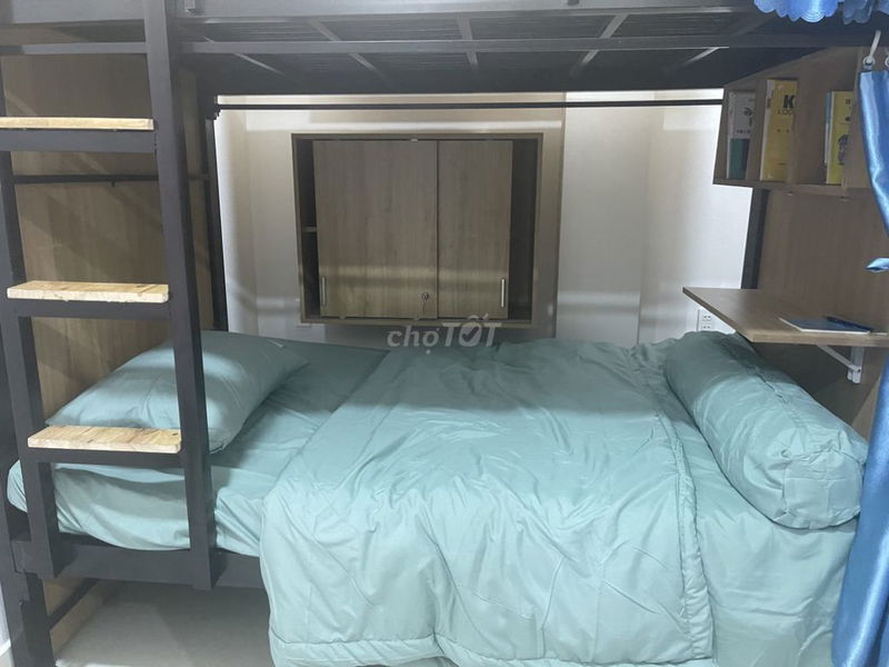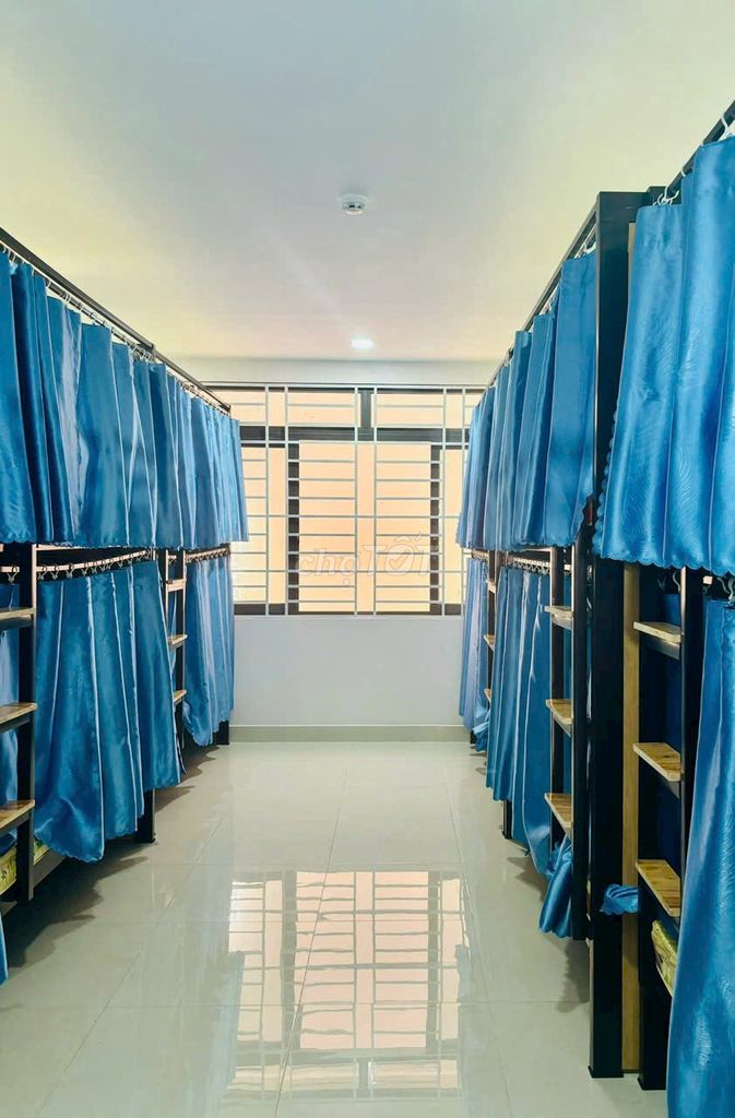 📦 giường mới 100%, rộng 1m² với đầy đủ tiện nghi: rèm, nệm, drap, tủ quần áo, tủ khoá, bàn làm việc