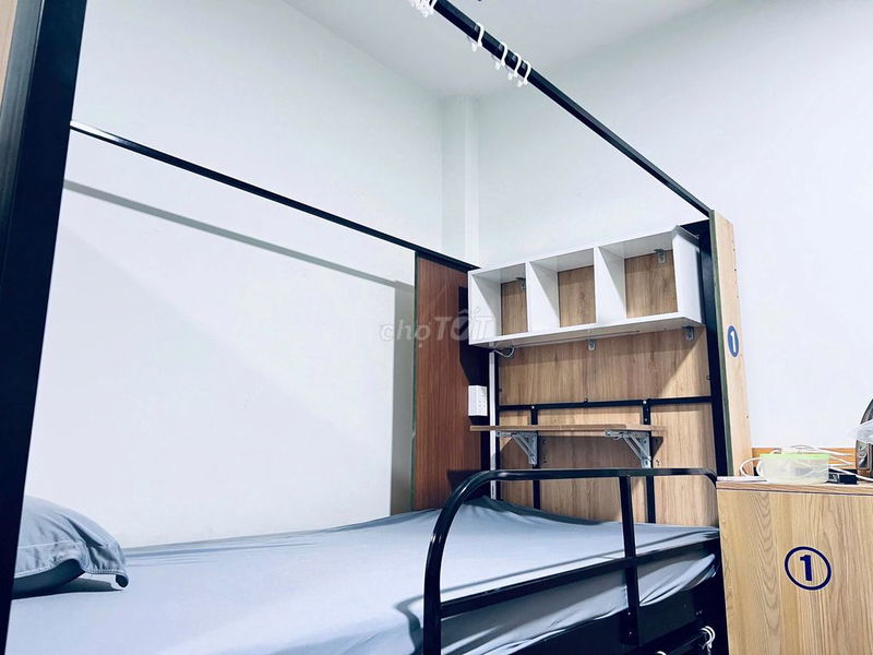 • ️Giường Tầng: Cho bạn không gian riêng tư và thoải mái, có màn riêng, ổ cắm điện và bàn học: