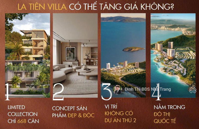 * Với vị trí đắc địa (lưng tựa núi Cô Tiên, mặt hướng vịnh Nha Trang) - hiếm có - số lượng giới hạn (668 căn), La Tiên Villa không chỉ là nơi ở mà còn là tài sản gia tăng bền vững, đồng thời mang lại dòng tiền ổn định từ vận hành cho thuê tại thành phố biển hàng đầu Việt Nam.