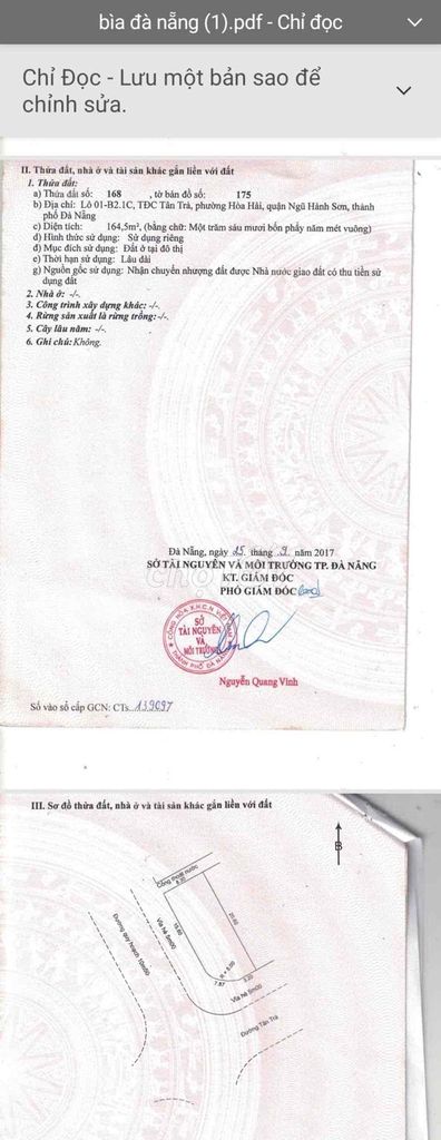 Đường Tân Trà, Phường Hòa Hải (lô đang phân tích) 164.4 94.28 15.5 Sát biển, gần dự án Newtown Diamond, đất thổ cư, đã có sổ