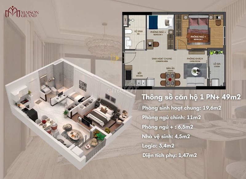 | Diện tích | 50 m² | 45 – 55 m² | Diện tích phù hợp với căn hộ 1PN phổ biến |