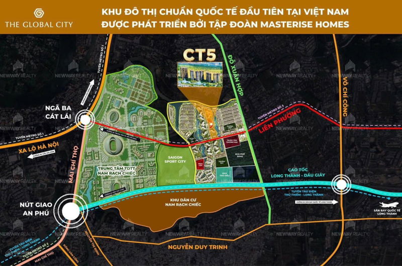 Masteri Park Place nằm trong The Global City, khu đô thị hiện đại, kết nối thuận tiện các trung tâm tài chính như Quận 1, Thủ Thiêm và sân bay Long Thành. Dự án có lợi thế mặt sông Rạch Chiếc, đem đến không gian sống xanh, thoáng đãng.