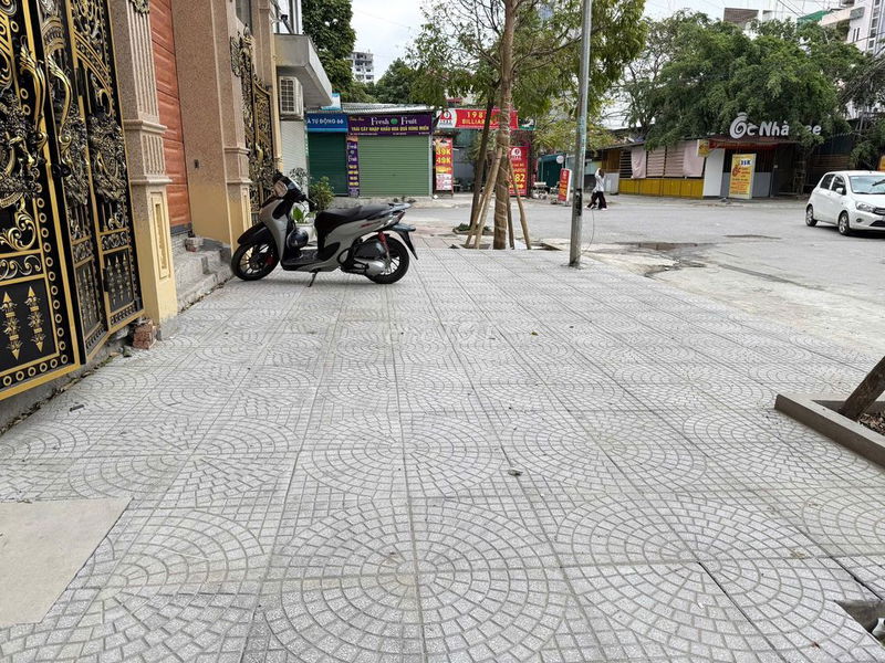 Vỉa hè trước tòa nhà rộng 50m², thuận tiện để xe máy.
