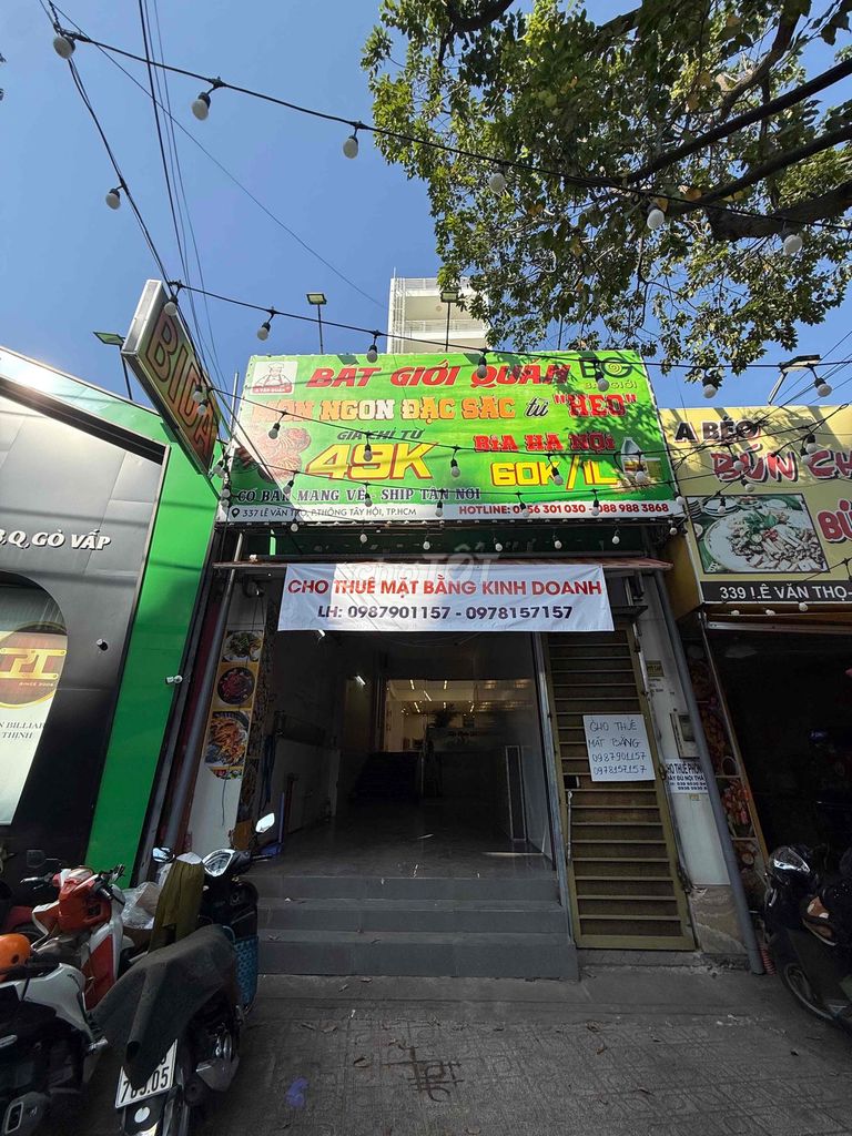 Mặt bằng cho thuê có diện tích 125 m² (5m mặt kính x 25m chiều dài), tọa lạc trên mặt tiền đường Lê Văn Thọ, phường 9, quận Gò Vấp – một con đường có mật độ lưu thông cao và tiềm năng kinh doanh tốt. Giá thuê đề xuất là 28 triệu đồng/tháng, tương đương 224.000 đồng/m²/tháng.