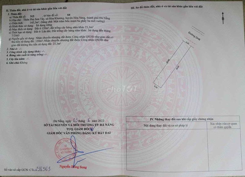 Vị trí đất nằm sát khu tái định cư Hòa Khương mới, đường đã trừ lộ giới, giao thông thông suốt, hướng Đông Bắc đón nắng sớm, là điểm cộng lớn về mặt phong thủy và tiện ích đi lại.