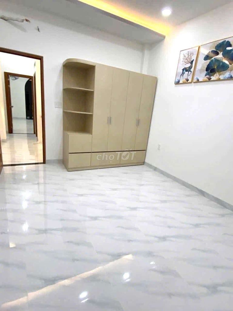 | Diện tích đất và xây dựng | 82,5 m² đất, 3,8 m x 21 m, nhà 1 trệt 2 lầu sân thượng, diện tích sàn 209 m², 6 phòng ngủ, 4 vệ sinh | Diện tích đất nhỏ hẹp (mặt tiền chỉ 3,8 m) nhưng bù lại nhà xây dựng mới 100%, thiết kế hiện đại, diện tích sàn lớn, phù hợp gia đình đông người hoặc vừa ở vừa kinh doanh. |
