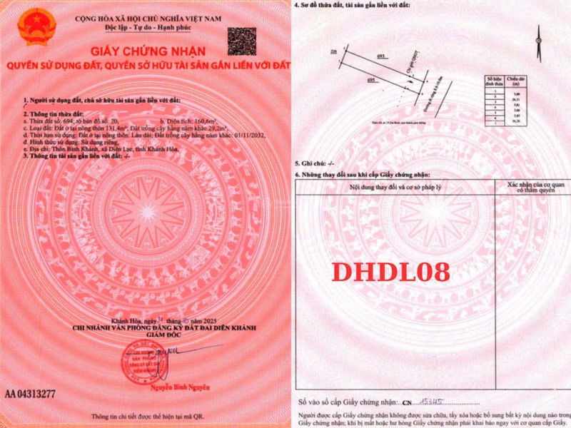 Diện tích 160,6 m² Thường các lô đất thổ cư ở khu vực Diên Khánh dao động từ 100 – 200 m² Diện tích phù hợp cho xây dựng nhà ở hoặc đầu tư nhỏ lẻ, đa dạng