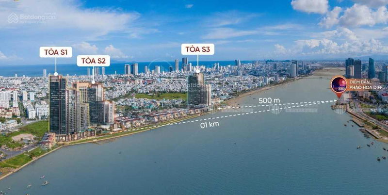 | Vị trí | Trực diện sông Hàn, sát khán đài xem pháo hoa, đối diện điểm bắn pháo hoa, mặt tiền đường Trần Hưng Đạo, Sơn Trà | Các dự án cao cấp khác nằm trong trung tâm Đà Nẵng nhưng không có view pháo hoa trực tiếp | Vị trí độc nhất vô nhị, tạo nên lợi thế rất lớn về mặt phong thủy và giá trị trải nghiệm. |