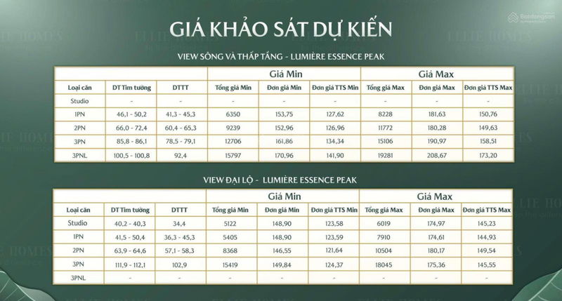- Với chính sách hỗ trợ vay vốn và chiết khấu 16-18% như tại Lumiere Essence Peak, mức giá bán sẽ còn cạnh tranh và hấp dẫn hơn trong giai đoạn mở bán đầu.