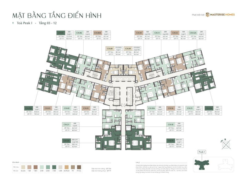 | Dự án | Vị trí | Diện tích 1PN (m²) | Giá bán (tỷ VNĐ) | Giá/m² (triệu VNĐ/m²) | Pháp lý & Nội thất | Ghi chú |